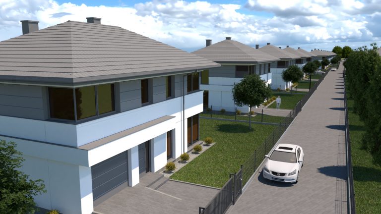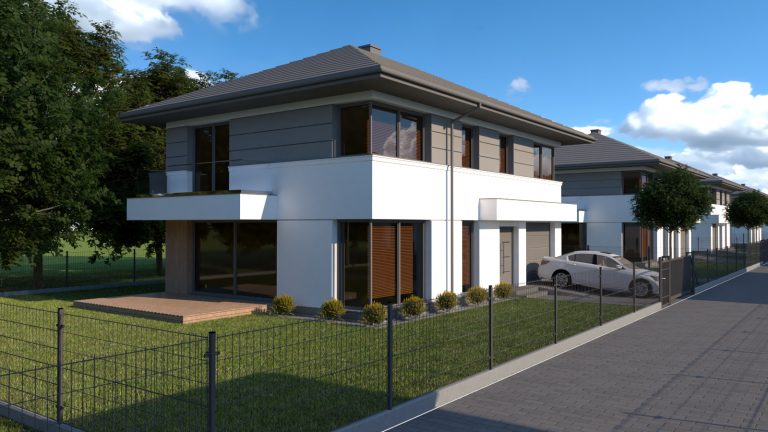 Położyliśmy duży nacisk na willowy charakter domów, dlatego każdy z budynków posiada nowoczesną piętrową bryłę.