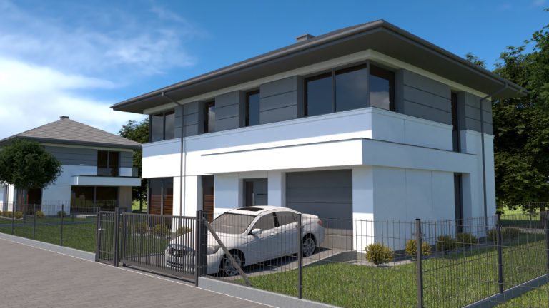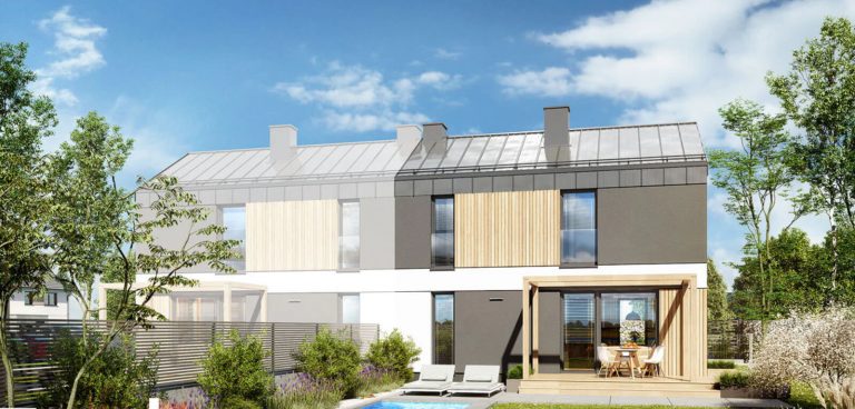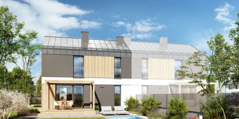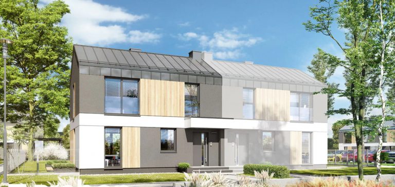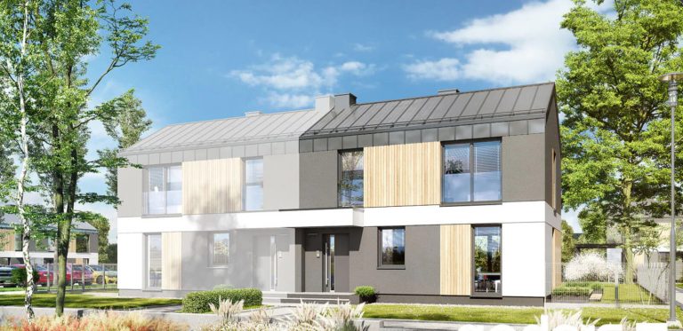 Dwie pełne kondygnacje pozwalają maksymalnie wykorzystać powierzchnię użytkową domu. Kopertowy dach pokryty jest dachówką, a każdy z budynków posiada jasne i przestronne wnętrza, doświetlone dużymi oknami. W elewację wkomponowano elementy ozdobne tak aby podkreślić nowoczesną architekturę i stylowy charakter domów.